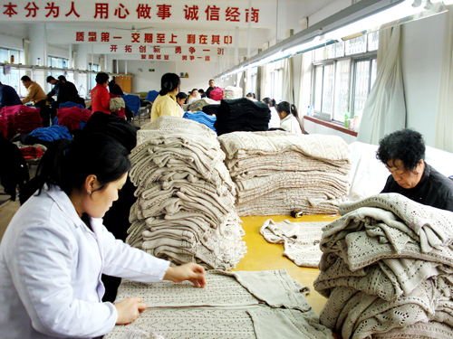 山東乳山工藝品有限責(zé)任公司始建于1956年,注冊資金1006萬元,占地面積1.19萬平方米,建筑面積2.55萬平方米,轄衣衫廠、抽紗廠兩個分廠,加工銷售機繡制品、針織衣衫、手工藝品、紡織輔料等。年加工總量880萬件(套),年銷售收入1.8億,80%以上產(chǎn)品銷往美國、加拿大、韓國、日本等國家和地區(qū)。現(xiàn)有在職職工600人。擁有各類毛衫生產(chǎn)設(shè)備1000多臺,公司總資產(chǎn)1.4億。
